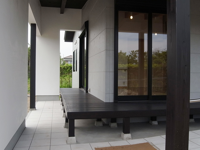 房総の田園風景に囲まれたのどかな土地に、あらたな新生活を向かえるためにバリアフリーの住まいを希望されたお施主様でした。40年前に建てられた母屋の増築として、それに溶け込むよう深い軒の出と、白壁とに木部黒塗装によって見事にマッチングしています。内部も漆喰とヒノキの無垢板張りにより、心地よい空間を実現した快適環境を備えた住まいです。建築施工写真