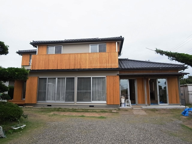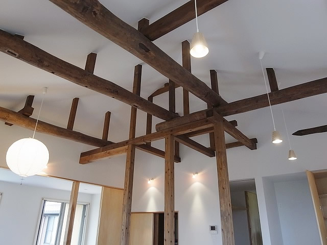 本物の素材と現代的なデザインを取り入れることで、見違えるほどスタイリッシュに生まれ変わった邸宅です。天井板を取り除くことで、梁を意匠として存在感を演出し、木と漆喰の古民家風のリノベーションです。建築施工写真